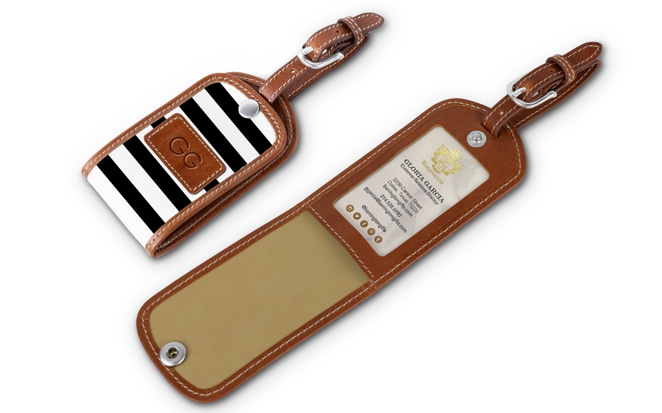 Add a distinctive flair to your suitcases and bags with the Landry Personalized Luggage Tag, offering a blend of style and practicality. Made from durable, water-resistant nylon canvas material with premium Florentine leather accents, these custom-printed luggage tags not only look exquisite but also offer exceptional quality and durability.With a clear slot for a standard 2″ X 3.5″ business card, the Landry Custom Luggage Tag ensures easy identification of your bags at the baggage claim. Choose from various colors, unique designs, and customization options to create personalized luggage tags that showcase your individuality and style.