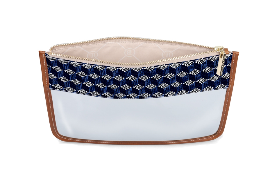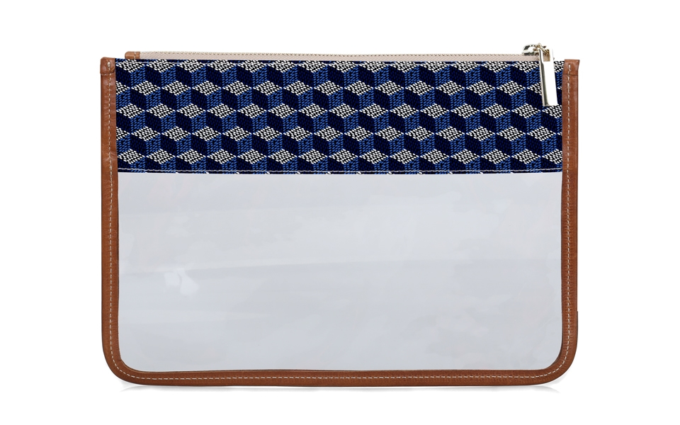 For the ultimate in organization! Store your small items such as headphones, cash, pens and more in our Clear Katie Pouch. This pouch is also ideal to tuck in your carry-on luggage. Personalize this by choosing a pattern and adding your initials to add a pop of color. This pouch is accented with genuine Florentine leather and our gold Barrington zipper.